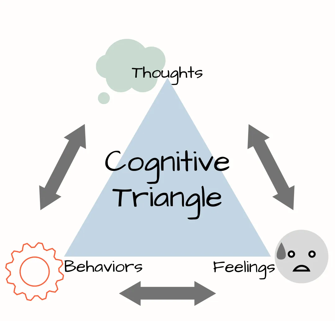 Modern psychology increasingly recognizes that mental well-being is a dynamic feedback system. What we think, what we feel, and what we do are not isolated experiences — they constantly interact, reinforcing either healthy or negative patterns. Cognitive Behavioral Therapy (CBT) visualizes this through the CBT triangle, where thoughts, emotions, and behaviors continuously influence one another.